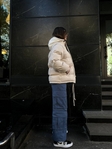 Куртка-бестселер з кашемірового матеріалу, доповнена контрастним капюшоном із футера. Капюшон з'ємний, виконаний з трьохнитки, знизу курточка має шнурки-затяжки для регулювання об'єму, рукава на манжетах.